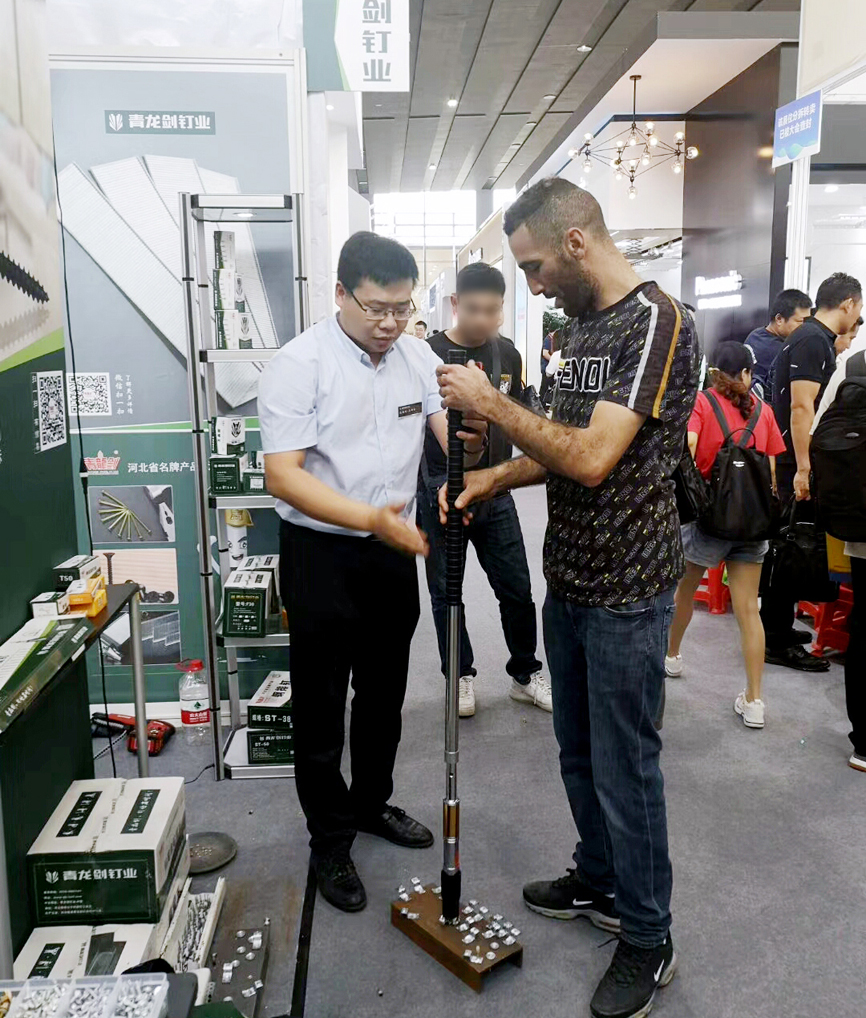青龍劍展廳前人潮涌動(dòng),人氣火爆,此次展會(huì)展出了裝修用釘、建筑用釘、木工用釘、螺絲釘系列,吊頂釘固釘器產(chǎn)品系列,是所有參展商里產(chǎn)品最齊全、系列最多的。在此次展會(huì)展示了我們的新產(chǎn)品、新設(shè)計(jì)、新技術(shù)和新戰(zhàn)略,得到了參展者的強(qiáng)烈興趣和廣泛關(guān)注。