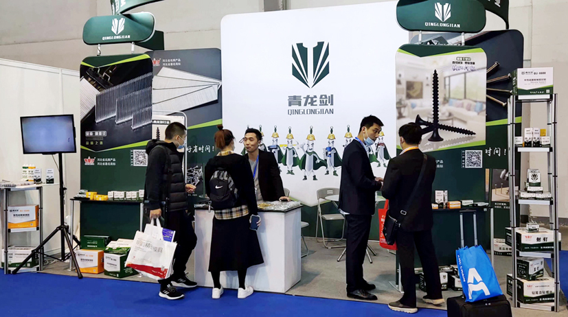 青龍劍公司此次的展品有:建筑用釘、裝修用釘、木工用釘、螺絲釘、門窗緊固、家具用釘以及膠類、五金類等新產(chǎn)品,展臺吸引了不少觀展商的目光。觀展商紛紛到公司展位前駐足咨詢,公司人員耐心為客戶詳細講解產(chǎn)品。