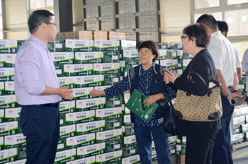 9月28日上午,由中國五金制品協會理事長 石僧蘭、執行理事長 張東立、副理事長 呂基英、柳潤峰,上海質檢院建筑五金質量監督檢測中心所長 謝明舜,組成的中國五金制釘(河北隆堯)產業基地考察評審團到隆堯五金協會企業參觀考察,隆堯縣高層領導、魏家莊鎮領導、魏家莊鎮五金協會會長、秘書長以及青龍劍公司馬群澤總經理等部門的相關負責人陪同評審團實地考察了制釘產業發展情況。